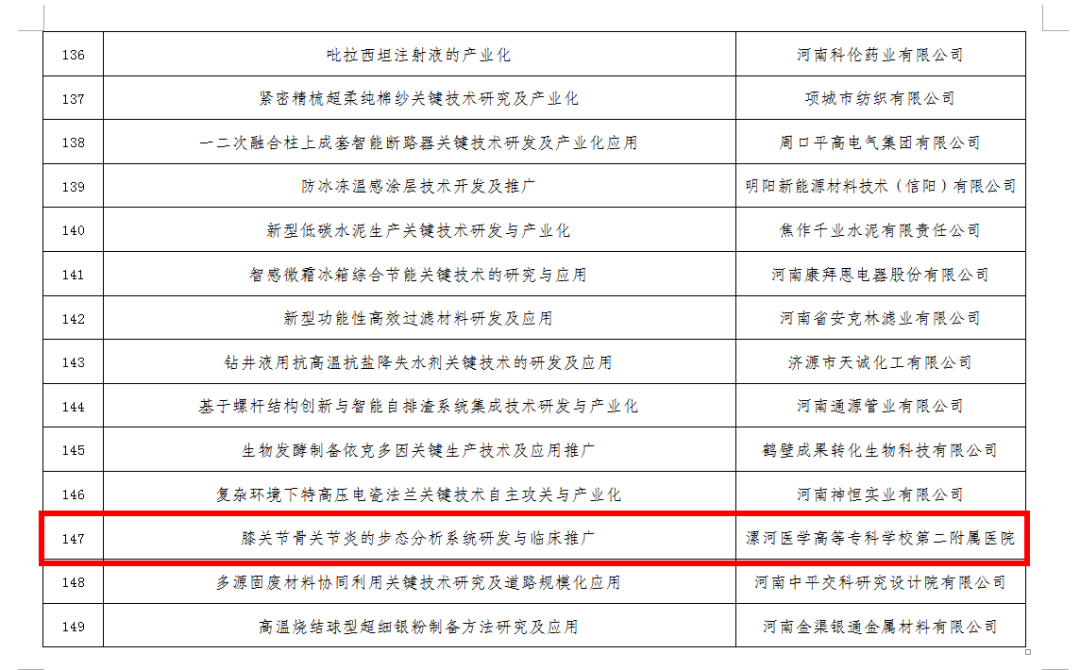 近日,河南省科學技術(shù)廳公示了2025年度河南省中央引導(dǎo)地方科技發(fā)展資金擬支持項目清單,由漯河醫(yī)專二附院(漯河市骨科醫(yī)院、漯河市立醫(yī)院)申報的“膝關(guān)節(jié)骨關(guān)節(jié)炎的步態(tài)分析系統(tǒng)研發(fā)與臨床推廣”項目成功入選。