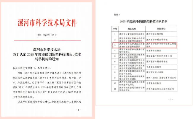 近日,漯河市科技局正式公布2025年度市級創(chuàng)新科技團(tuán)隊(duì)認(rèn)定名單,醫(yī)院“慢性水腫潰面治療康復(fù)MDT創(chuàng)新型科技團(tuán)隊(duì)”憑借其創(chuàng)新的多學(xué)科協(xié)作模式、扎實(shí)的臨床實(shí)踐與顯著的診療成果,從全市數(shù)十家申報(bào)團(tuán)隊(duì)中脫穎而出,成功獲評。