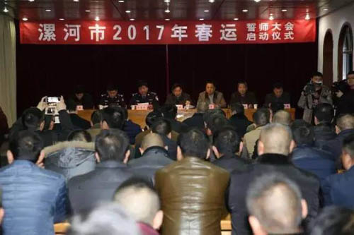 為全力做好春運(yùn)道路交通安全管理工作,預(yù)防重特大交通事故,確保“兩節(jié)”平穩(wěn)度過(guò),1月12日晚,漯河市舉行2017年春運(yùn)交通安全誓師大會(huì)。