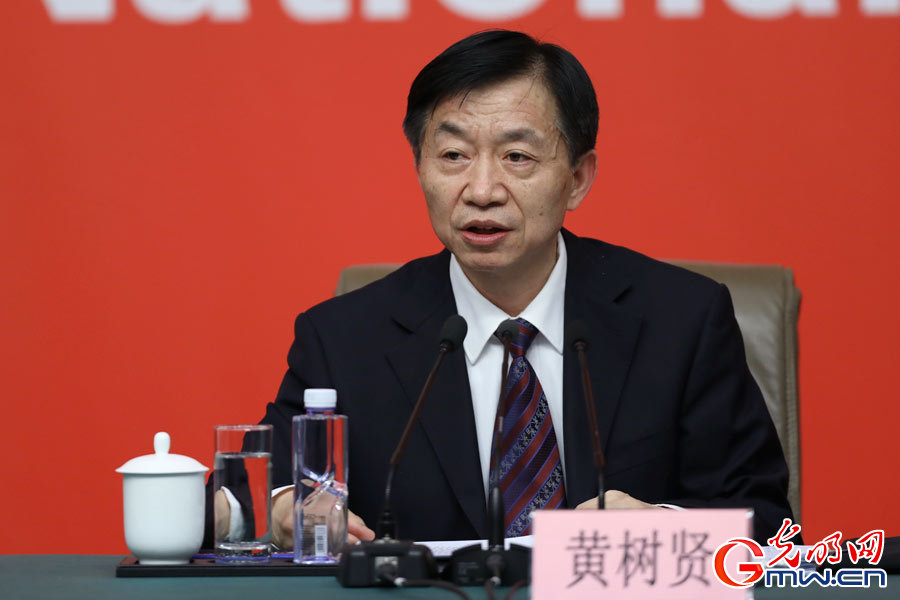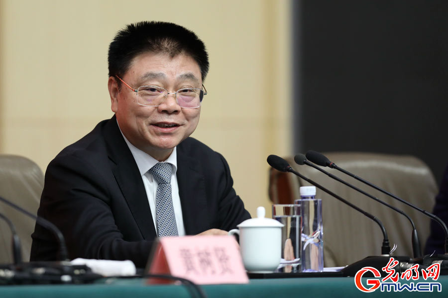 民政部黨組書記、部長黃樹賢回答記者提問。 (光明網(wǎng)記者 孫佳涵/攝)