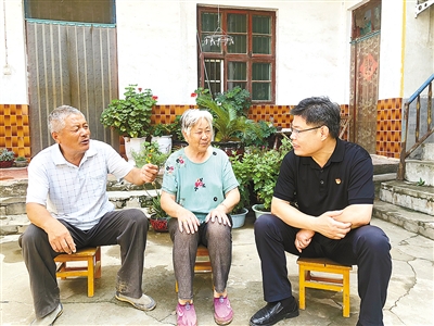 郭紅福與薛道民、李翠花老兩口嘮家常。(資料圖片)見習(xí)記者 黨夢(mèng)琦