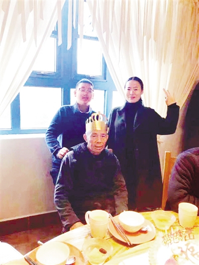 仝小占(右)給仝獅子過(guò)生日。市文明辦供圖