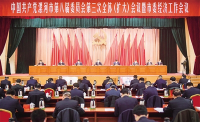右圖:12月28日,市委八屆三次全體(擴(kuò)大)會(huì)議暨市委經(jīng)濟(jì)工作會(huì)議召開(kāi)。記者 焦海洋 攝