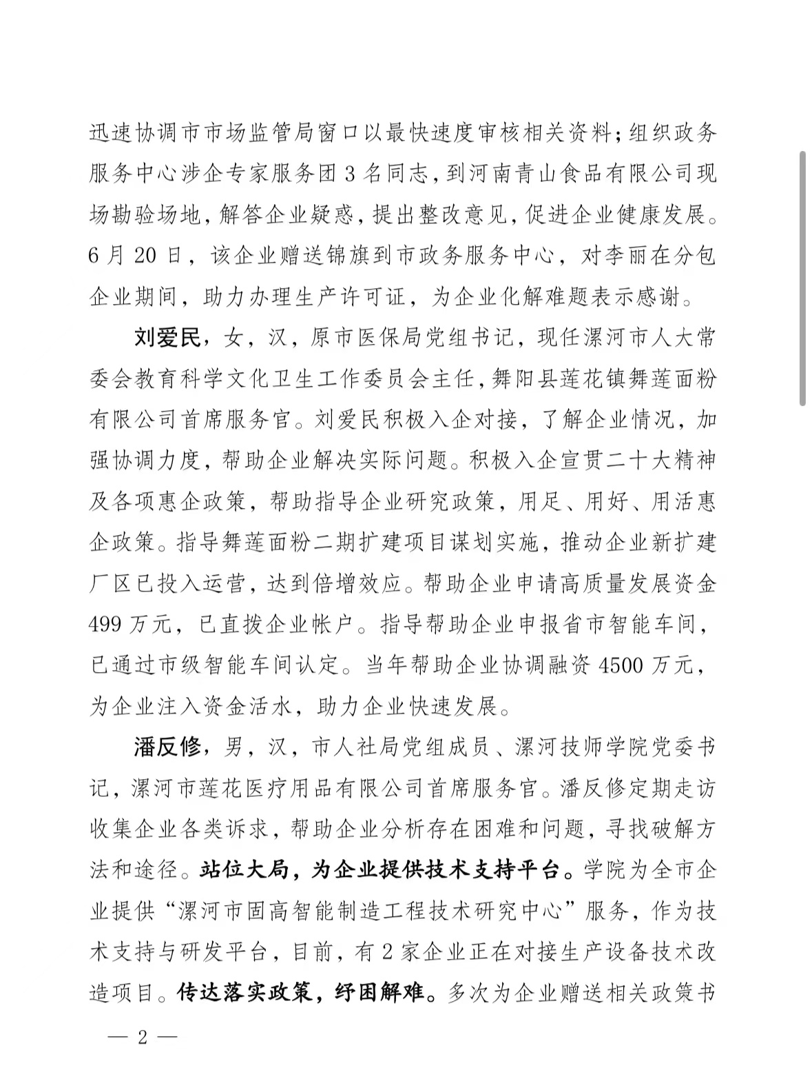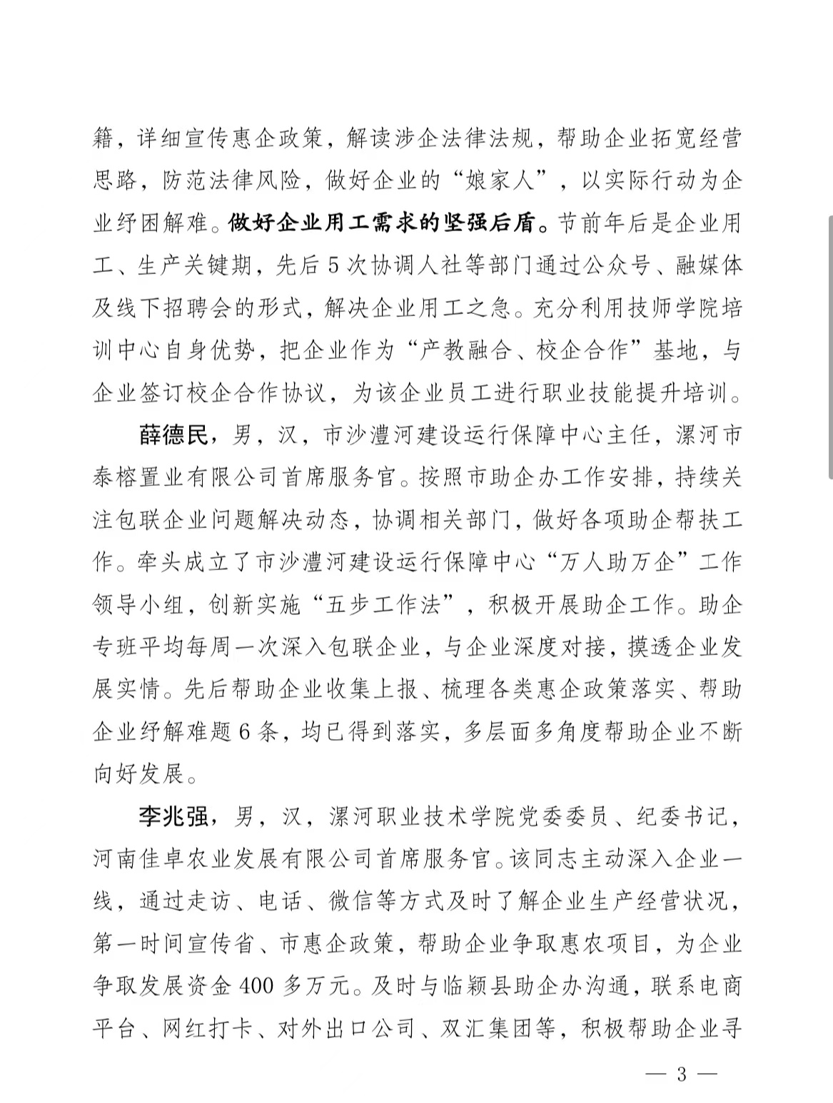 河南省“萬人助萬企” 活動 漯河市2023年6月份“十佳首席服務(wù)官”