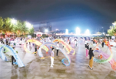 “明月幾時有?把酒問青天。不知天上宮闕,今夕是何年……”9月16日晚,在紅楓廣場東側(cè)的舞臺上,一群小朋友身穿傳統(tǒng)服飾,手持書卷,深情朗誦蘇軾的《水調(diào)歌頭·明月幾時有》。當晚的沙澧河風光帶璀璨奪目,正在進行的秋燈會吸引了數(shù)萬名游客。