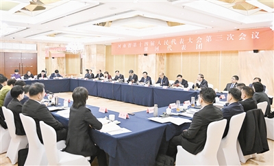 1月18日下午,省十四屆人大三次會(huì)議漯河代表團(tuán)召開(kāi)全體會(huì)議,審議省政府工作報(bào)告,審查計(jì)劃報(bào)告、預(yù)算報(bào)告及相關(guān)草案。記者 焦海洋 攝