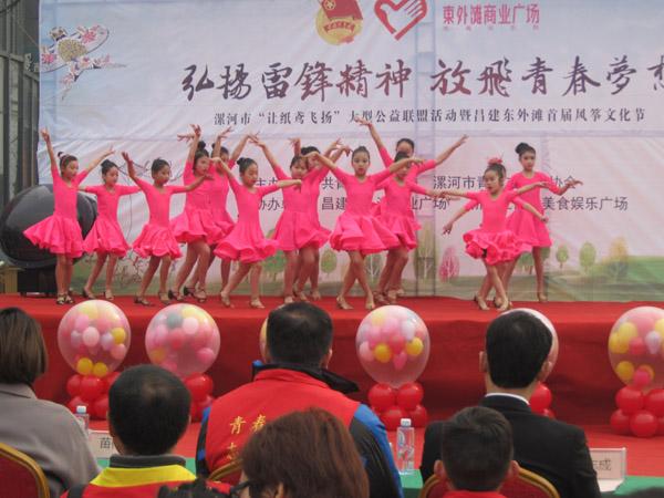 在啟動(dòng)儀式上舉行“童心繪沙澧”主題活動(dòng),20多名留守兒童/殘疾兒童與青年志愿者共同在風(fēng)箏上繪制沙澧美景,并一起放飛風(fēng)箏;一個(gè)16的漯河小伙子用6個(gè)月時(shí)間,精心制作了長(zhǎng)達(dá)33米的巨型大風(fēng)箏,放飛在商業(yè)廣場(chǎng)的時(shí)空;中學(xué)生表演的舞蹈節(jié)目,美奐美倫,特別受到廣大志愿者和留守兒童/殘疾兒童們的歡迎。