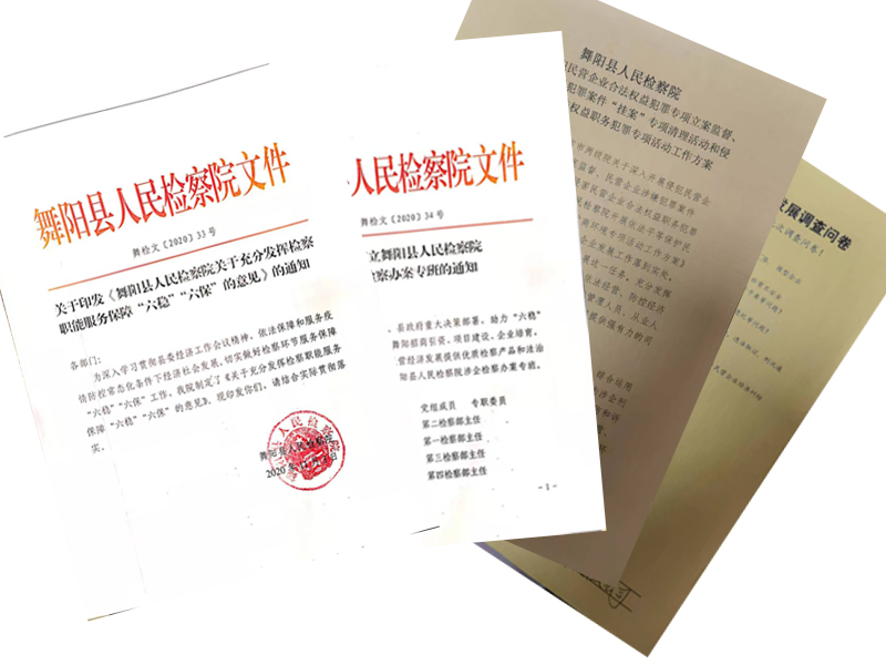 尤其在今年疫情防控背景下,舞陽縣檢察院立足檢察職能,向社會(huì)公開承諾積極做好服務(wù)保障企業(yè)復(fù)工復(fù)產(chǎn)工作,組織開展了嚴(yán)懲妨礙企業(yè)生產(chǎn)經(jīng)營犯罪專項(xiàng)活動(dòng)等五個(gè)業(yè)務(wù)專項(xiàng)活動(dòng),主動(dòng)上門為企業(yè)送法、送服務(wù),深入了解企業(yè)遇到的問題,對公司法務(wù)難題進(jìn)行釋法析理、出謀劃策,真正讓企業(yè)家感受檢察力量。