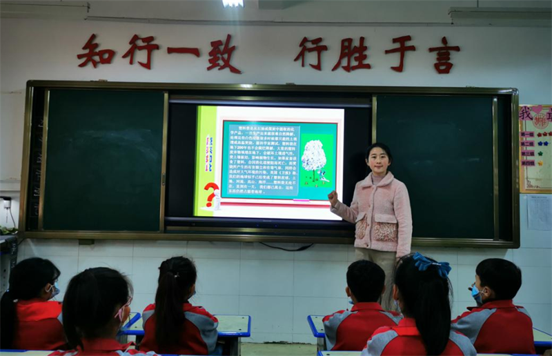 三是強化機制確保成效。讓學(xué)生了解白色污染的同時,學(xué)校通過“小手拉大手”的形式,由學(xué)生把禁限塑相關(guān)知識帶給家庭成員,讓他們也積極參與到活動中,為孩子們樹立起榜樣,通過家校聯(lián)合,起到更好的教育效果,實現(xiàn)“教育一個孩子、影響一個家庭、輻射整個社會”的宣傳教育目的。 此次活動,讓廣大師生、家長充分了解了塑料污染治理的重要性和必要性,有利于廣泛凝聚共識,營造全社會共同參與的良好氛圍,為治理塑料污染,創(chuàng)建美麗家園作出更多的努力。(潘范學(xué) 王娟)