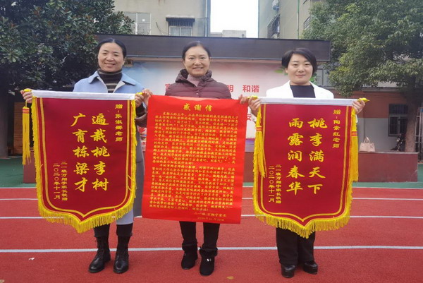 12月2日,外國(guó)語(yǔ)小學(xué)二一班家長(zhǎng)走進(jìn)班級(jí),給班主任陶素紅和張淑娜老師贈(zèng)送錦旗和感謝信,班級(jí)不時(shí)傳來(lái)陣陣掌聲,為兩位老師喝彩點(diǎn)贊。