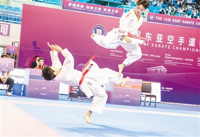 (記者 楊 光)5月10日上午,第十一屆東亞空手道錦標(biāo)賽在市體育館開(kāi)幕。來(lái)自中國(guó)、日本、韓國(guó)、朝鮮等7個(gè)國(guó)家和地區(qū)的179名運(yùn)動(dòng)員在這里進(jìn)行為期兩天的激烈角逐。中國(guó)空手道隊(duì)派出了61名運(yùn)動(dòng)員參賽所有組別的角逐。記者了解到,國(guó)家隊(duì)中有我市輸送的運(yùn)動(dòng)員徐俊博和王雨涵。