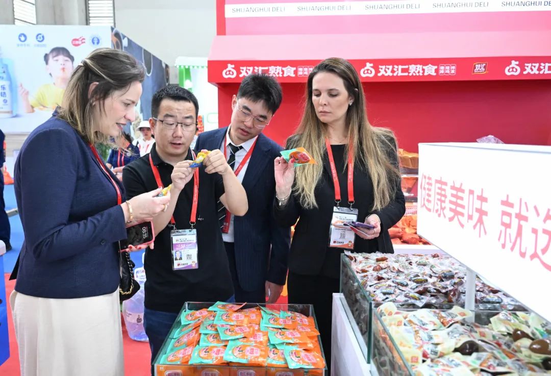 肉制品綜合展區(qū)展示了簡(jiǎn)頌午餐肉、炫動(dòng)番茄香腸、爆漿芝士腸、爆漿芝士魚(yú)餅等新品,金馬可減鹽火腿腸、輕咔能靚雞胸肉腸、辣嗎?辣、輕享雞肉腸等特色產(chǎn)品,還有泡椒豬皮、虎皮雞爪、熏烤肉腸、多彩烤肉餅等休閑零食,品種豐富、口味多樣,可以滿足不同消費(fèi)需求。