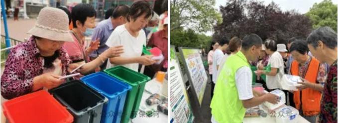 活動現(xiàn)場設(shè)置宣傳展板、講解臺,志愿者發(fā)放環(huán)保宣傳頁、環(huán)保購物袋、環(huán)保圍裙等,向群眾講解生態(tài)環(huán)境保護、生活垃圾分類、綠色低碳生活等知識。同時,現(xiàn)場開展了垃圾分類投放活動,投放正確的可獲得環(huán)保餐盒、環(huán)保垃圾桶等獎品。