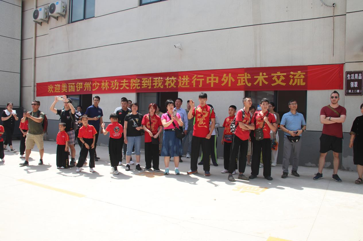 為了促進學(xué)校武術(shù)事業(yè)的發(fā)展,增強中外武術(shù)的合作與交流。6月9日上午,美國伊州少林功夫院的22名老中青學(xué)員,在美籍華人陳楊先生的帶領(lǐng)下,到河南省臨潁縣杜曲鎮(zhèn)龍?zhí)么寤圯x文武學(xué)校開展中外武術(shù)交流活動。杜曲鎮(zhèn)龍?zhí)么妩h委書記郭自安、中原教育周刊事業(yè)部主任曹江賀、臨潁縣慧輝文武學(xué)校校長魯曉輝等領(lǐng)導(dǎo)參加了這次中外武術(shù)交流活動。