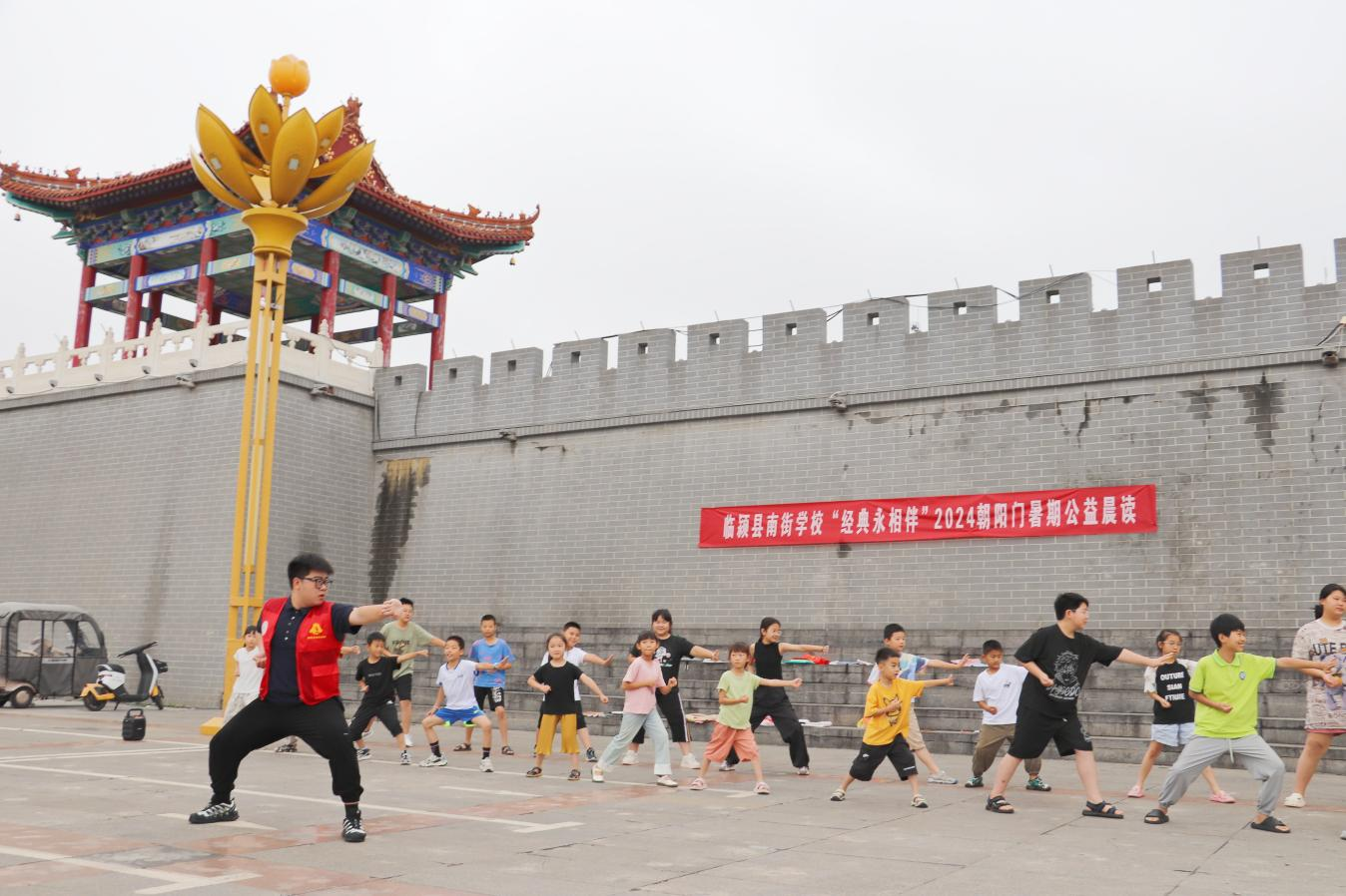 “沖拳!一,哈!二,哈!……”清晨,在漯河市臨潁縣南街村朝陽門廣場激蕩著響亮的口號聲,這聲音整齊劃一、鏗鏘有力,伴隨著氣勢十足的聲音,只見孩子們做出馬步、穿掌、沖拳、踢腿等經(jīng)典的武術(shù)招式,動作有力,虎虎生風。