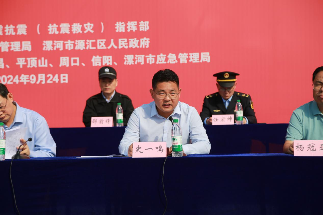 史一鳴致辭中表示,將以此次豫南七地市聯(lián)合地震應(yīng)急演練在我區(qū)的舉行為契機(jī),持續(xù)完善防災(zāi)減災(zāi)應(yīng)急體系,加強(qiáng)人防、物防、技防建設(shè),切實(shí)提升應(yīng)急救援能力,增強(qiáng)居民防震減災(zāi)意識,全力保障人民群眾生命財產(chǎn)安全。