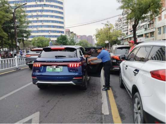 配合學(xué)校營(yíng)造暢通有序、健康文明的校園周邊環(huán)境。各網(wǎng)格城市管理人員幫助學(xué)生家長(zhǎng)提供開(kāi)車門(mén)、搬運(yùn)行李、護(hù)送學(xué)生過(guò)馬路等暖心服務(wù)。在做好護(hù)航入校的同時(shí),并做好中午、晚間