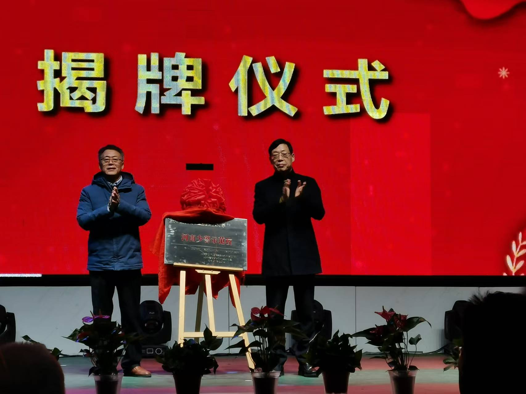 活動(dòng)現(xiàn)場(chǎng)與會(huì)領(lǐng)導(dǎo)為少年警官實(shí)訓(xùn)基地、河南少年警校示范校揭牌,為負(fù)責(zé)人與教練頒發(fā)了聘書(shū)與榮譽(yù)證書(shū)。