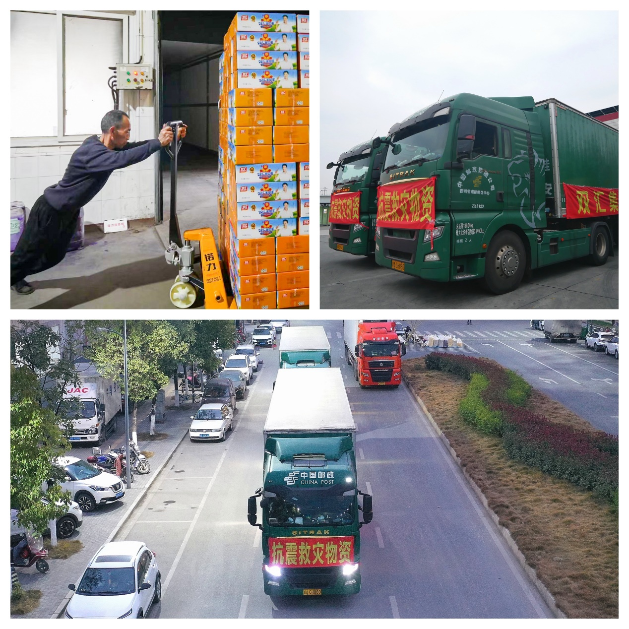 1月12日,雙匯集團從四川綿陽公司調撥的1萬件火腿腸等食品通過中國郵政快遞專車發(fā)往西藏日喀則市定日縣地震災區(qū)。