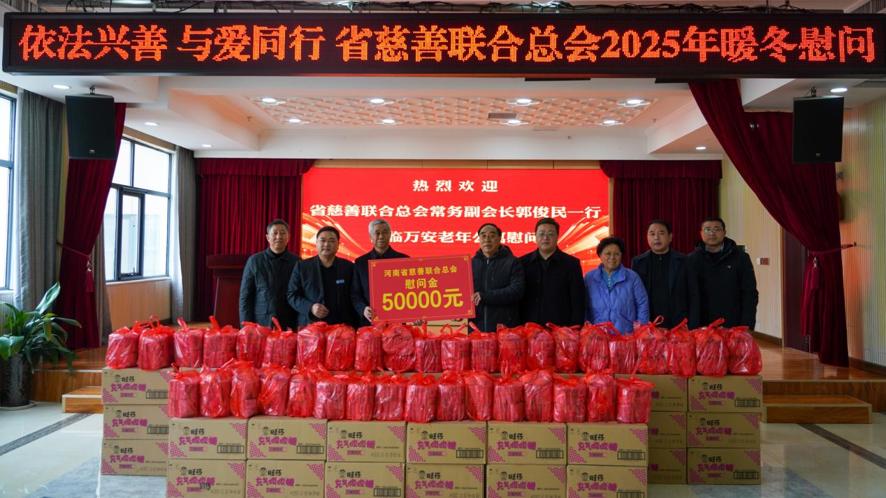 1月14日上午,省政協(xié)原秘書長(zhǎng)、省慈善聯(lián)合總會(huì)常務(wù)副會(huì)長(zhǎng)郭俊民、秘書長(zhǎng)楊吉中、財(cái)務(wù)部部長(zhǎng)李紅鶴一行來漯開展2025年“慈善暖冬”慰問活動(dòng)。