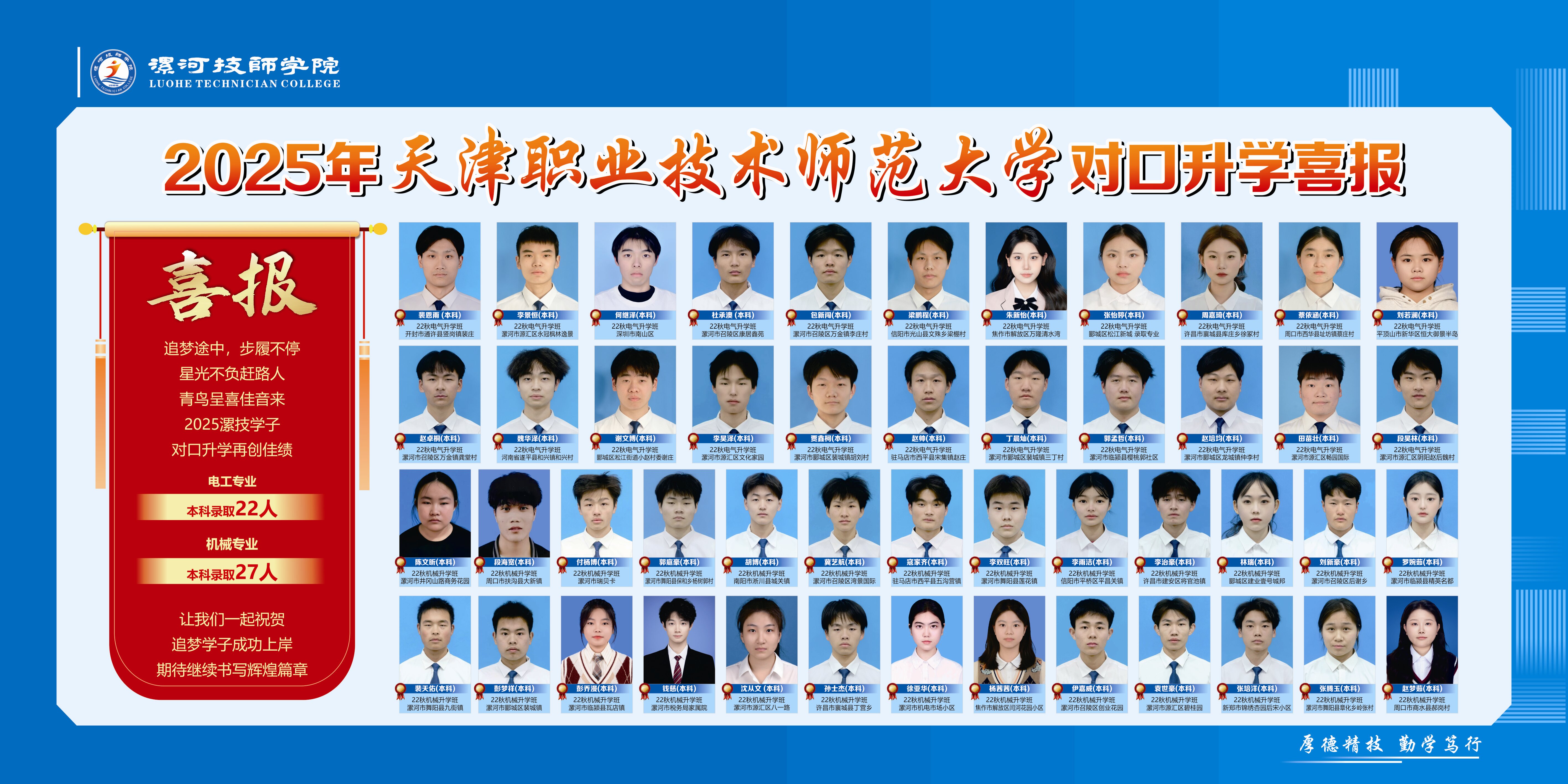 設(shè)有電氣自動(dòng)化設(shè)備安裝與維修、機(jī)械設(shè)備維修、計(jì)算機(jī)應(yīng)用與維修、護(hù)理4個(gè)專業(yè)。升學(xué)方向以對(duì)口單招天津職業(yè)技術(shù)師范大學(xué)本科單招為主陣地,兼顧河南省對(duì)口升學(xué)考試。近三年來,天職師大本科升學(xué)率每年65%-75%。2025年,護(hù)理專業(yè)在河南省對(duì)口升學(xué)錄取率高達(dá)93%。