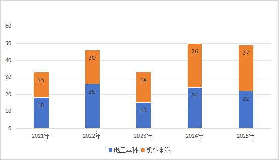 近五年漯河技師學(xué)院升學(xué)部電工專業(yè)、機(jī)械專業(yè)學(xué)子被天職師大對(duì)口升學(xué)本科錄取人數(shù)