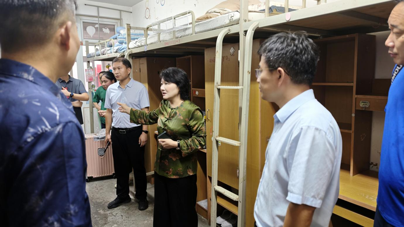 隨后,張祎捷一行走訪了源匯校區(qū)臨床醫(yī)學(xué)院、口腔醫(yī)學(xué)院、護(hù)理學(xué)院、藥學(xué)院、中醫(yī)學(xué)院、醫(yī)技學(xué)院迎新點(diǎn),詳細(xì)了解報(bào)到情況,仔細(xì)詢問新生報(bào)到流程,注冊進(jìn)度和志愿服務(wù)安排。每到一處,她都與新生、家長及工作人員深入交流。在學(xué)生宿舍區(qū),她重點(diǎn)查看了生活服務(wù)保障措施,認(rèn)真傾聽學(xué)生初入校園的感受,鼓勵他們積極適應(yīng)新環(huán)境、融入大集體,盡快以飽滿的狀態(tài)投入大學(xué)生活,并感謝家長對學(xué)校的信任與托付。此外,張祎捷一行還前往校區(qū)食堂、超市、志愿服務(wù)點(diǎn),檢查餐飲衛(wèi)生、商品供應(yīng)、志愿服務(wù)等情況,確保新生在校生活需求得到全方位保障。