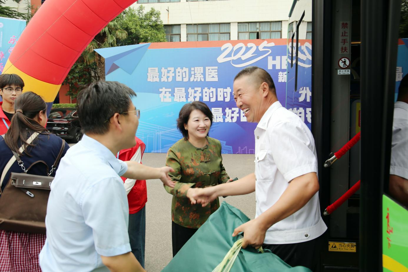 青春乘秋風(fēng),壯志啟新程。8月30日,漯河醫(yī)專迎新工作全面拉開帷幕,上午8時(shí),校長張祎捷、校黨委副書記邊曉峰分別帶領(lǐng)校領(lǐng)導(dǎo)班子深入源匯校區(qū)、召陵校區(qū)迎新現(xiàn)場,迎接第一輛駛?cè)胄@的新生班車,親切看望2025級新生及家長,并慰問一線工作人員和志愿者。