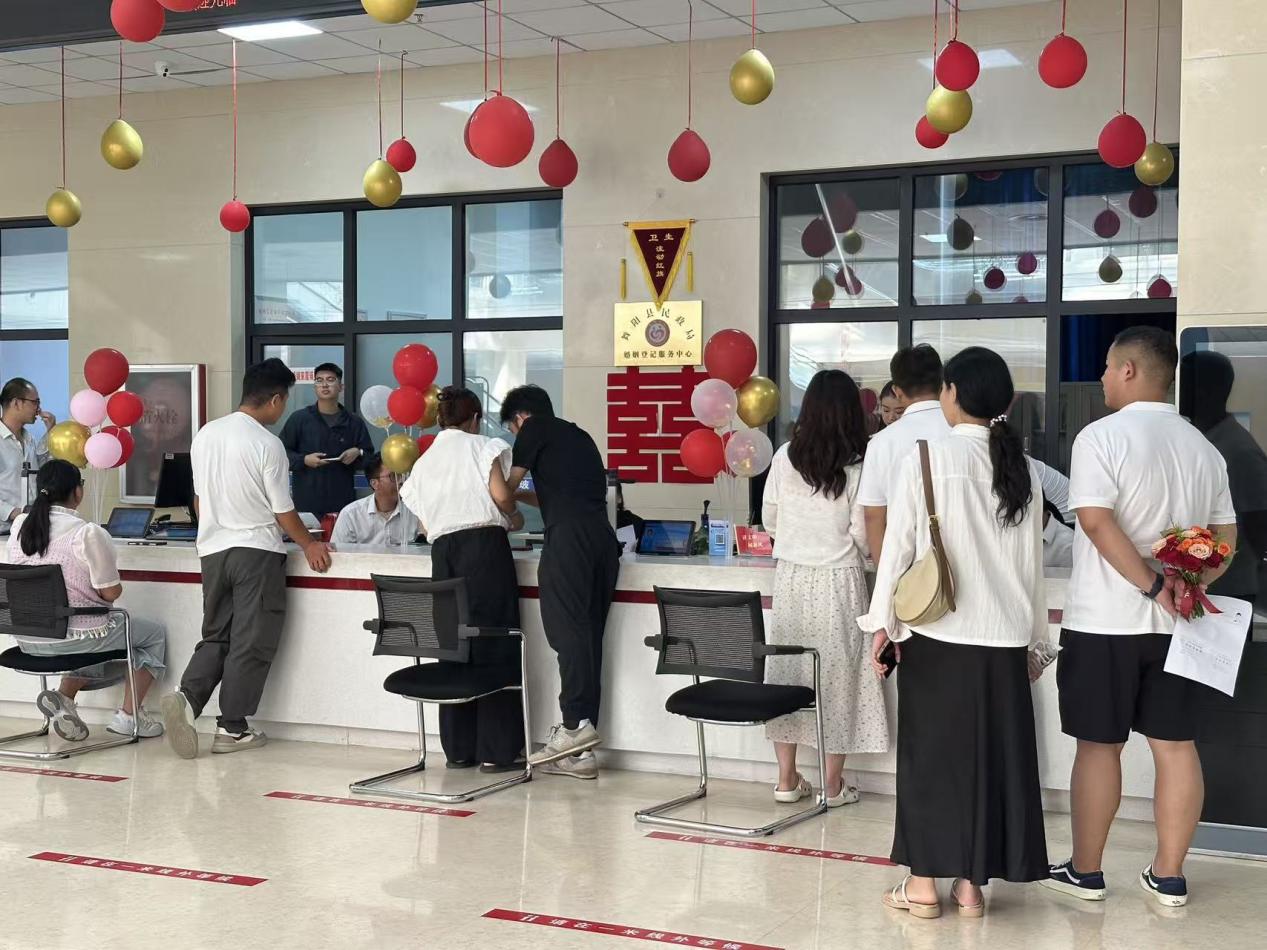 舞陽縣審信局創(chuàng)新“高效辦成一件事”服務,弘揚中華優(yōu)秀傳統(tǒng)文化,傳遞七夕“愛情、家庭、和諧”的美好寓意,推動政務服務與文化傳承的融合,用政務溫度點亮傳統(tǒng)文化,以貼心服務傳遞幸福能量,實現(xiàn)婚姻登記、家庭政策宣傳與新時代婚俗新風倡議有機結合。