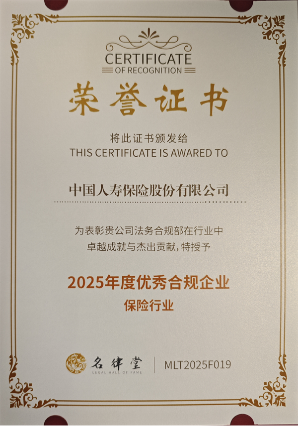 近日,在國內(nèi)法律行業(yè)交流平臺(tái)名律堂組織的“2025年企業(yè)合規(guī)先鋒榜”評(píng)選項(xiàng)目中,中國人壽保險(xiǎn)股份有限公司(以下簡稱“中國人壽”,股票代碼:601628.SH,2628.HK)榮膺保險(xiǎn)行業(yè)“2025年度優(yōu)秀合規(guī)企業(yè)”。