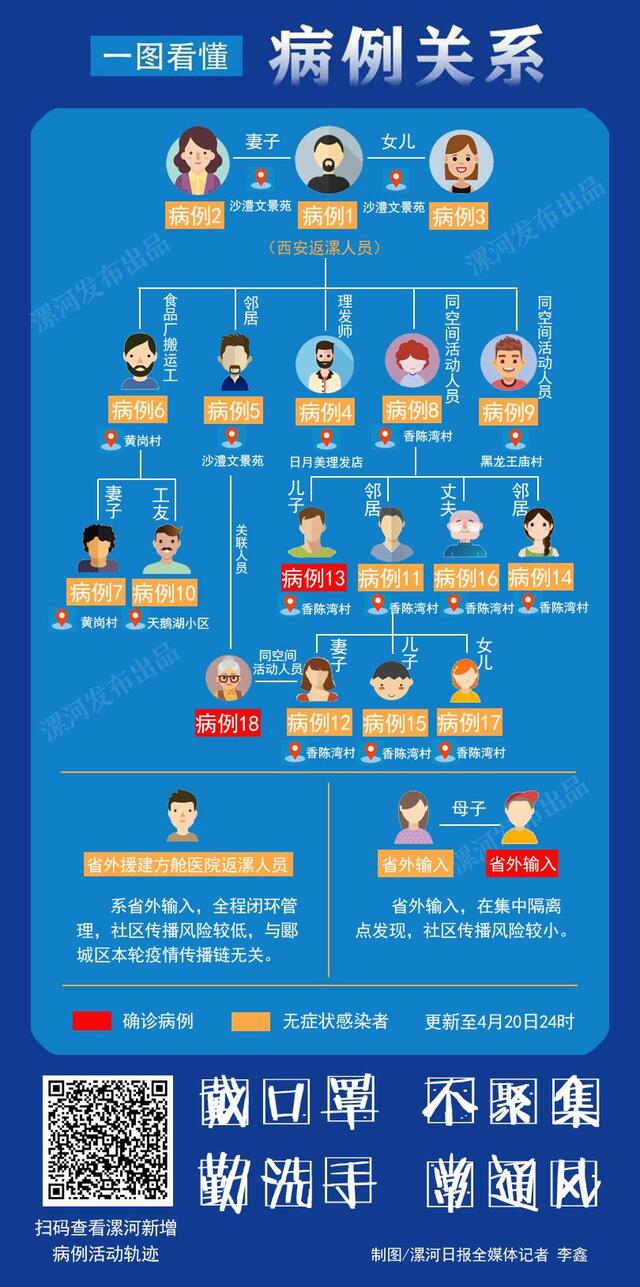 病例18:系病例5的關聯(lián)人員,病例12的同空間活動人員。近14天內(nèi)未出漯。