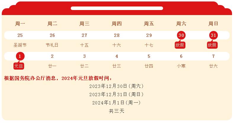 根據(jù)國務(wù)院辦公廳消息,2024年元旦放假時間: