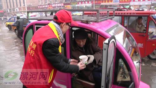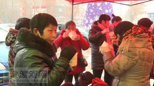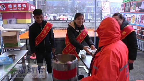 煙廠花園也是我市的人流密集區(qū)域,雖然天上飄著小雨,但仍有大批的愛心志愿者在這里忙碌著,他們正在為過往的市民送上一碗碗熱氣騰騰的愛心粥。除此之外,在丹尼斯、火車站廣場這些漯河最繁華的地段,這里的志愿者從早上七點(diǎn)就開始準(zhǔn)備了,他們說,這些粥不僅要為大家?guī)矶盏臏嘏?,也要送上?jié)日的祝福。