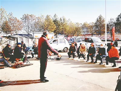 “今天風有些大,出來看戲的人少,平時有百十人哩!”郭陳村62歲的郭記才是戲曲演出活動發(fā)起人之一。他說:“來這里唱戲的都是‘???rsquo;。大家除了自娛自樂,還相互學習切磋。每周四下午2點,只要天氣條件允許,村民們在這個文化廣場準時開唱。”