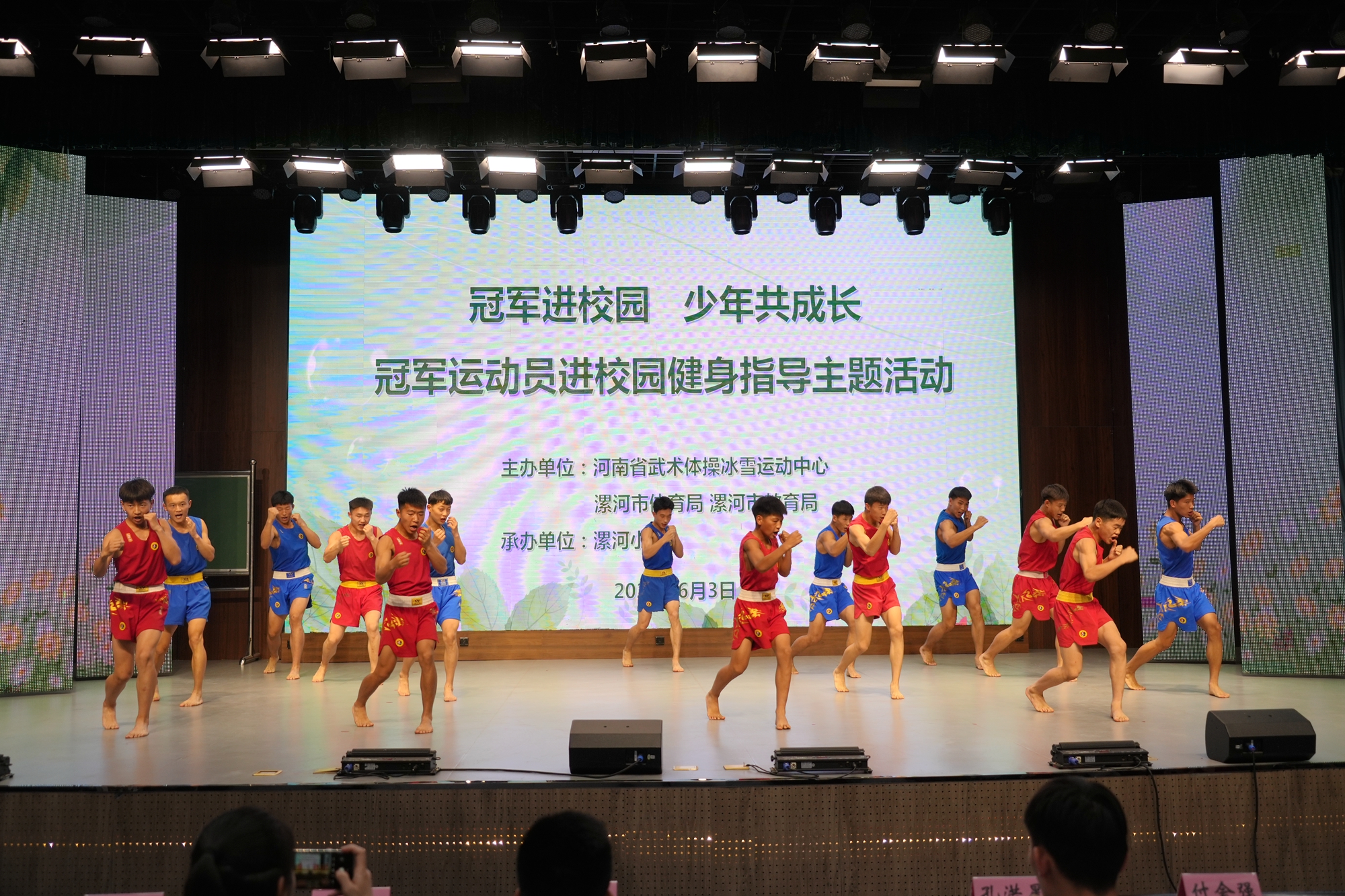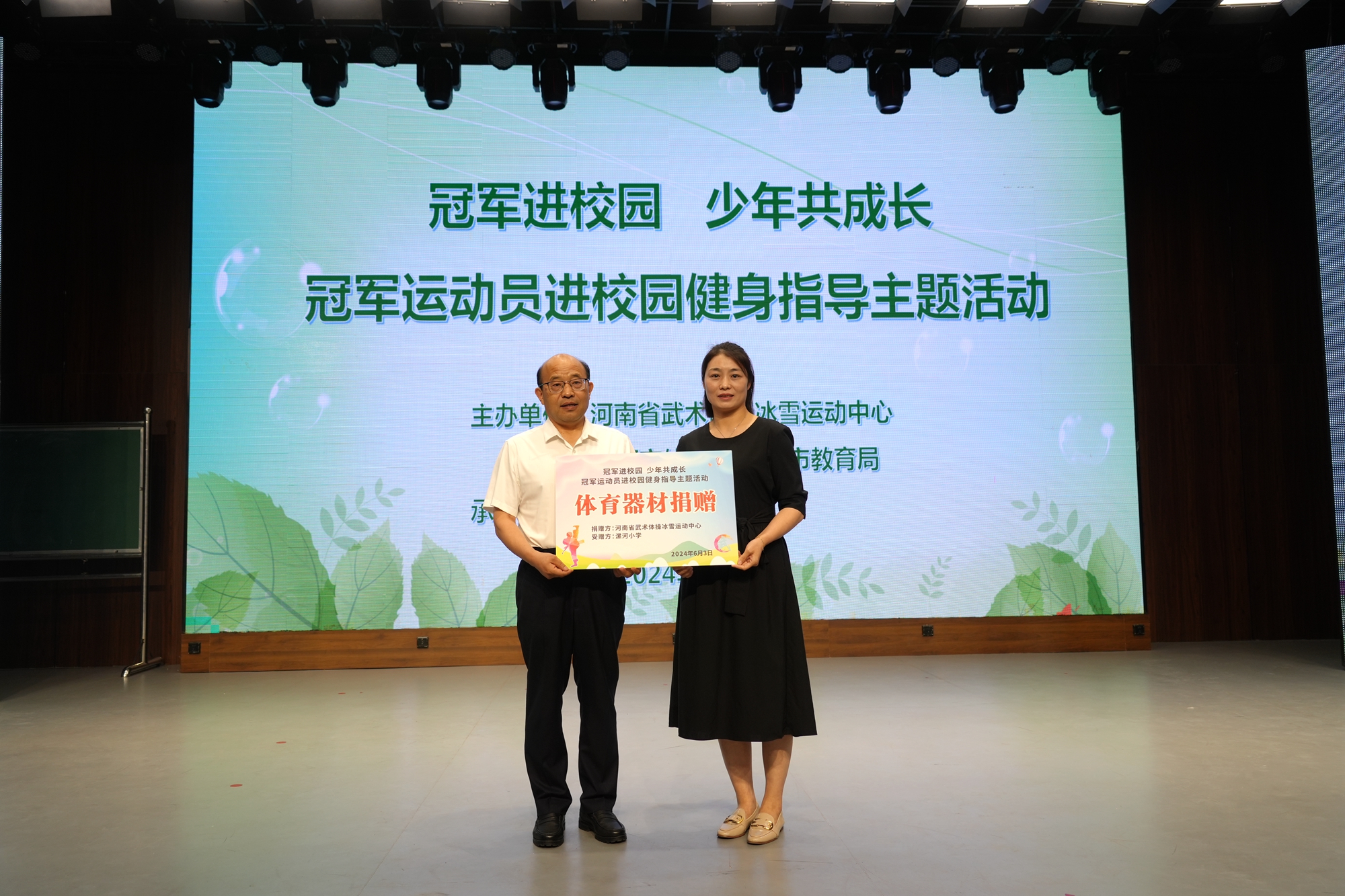 6月3日下午,漯河市培養(yǎng)輸送的世界武術(shù)散打冠軍孔洪星、申國順走進(jìn)漯河小學(xué),與該校師生進(jìn)行了一場(chǎng)富有意義的互動(dòng)活動(dòng)。河南省武術(shù)體操冰雪運(yùn)動(dòng)中心副主任劉同濤,省武術(shù)體操冰雪運(yùn)動(dòng)中心紀(jì)檢專干李俊麗,漯河市文化廣電和旅游局(體育局)副局長(zhǎng)付會(huì)強(qiáng),漯河市教育局副局長(zhǎng)郭俊偉,漯河市體育中心主任馬大草,漯河市教育局體衛(wèi)藝站站長(zhǎng)陳國印,漯河小學(xué)黨總支書記丁俊生,漯河小學(xué)校長(zhǎng)李蘊(yùn)華出席本次活動(dòng)。