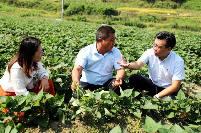 圖:駐村書(shū)記與鄉(xiāng)鎮(zhèn)干部對(duì)接通過(guò)普惠金融謀發(fā)展促增收