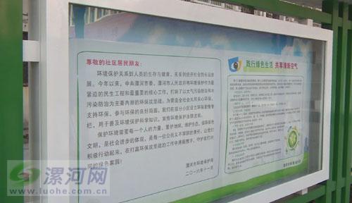 據(jù)了解,今年8月份以來,市環(huán)保局就策劃開展了“環(huán)保進(jìn)萬家”社區(qū)宣傳活動。市環(huán)保局在郾城區(qū)、源匯區(qū)、召陵區(qū)、經(jīng)濟(jì)技術(shù)開發(fā)區(qū)、城鄉(xiāng)一體化示范區(qū)和西城區(qū)各選擇2個居民小區(qū),組織開展社區(qū)環(huán)保宣傳。在選定的小區(qū)內(nèi)設(shè)置固定環(huán)保宣傳欄,定期更換內(nèi)容,開展環(huán)保科普知識宣傳、生態(tài)文明宣傳。在小區(qū)內(nèi)擺放宣傳版面,向居民宣傳展示全市污染防治工作進(jìn)展、環(huán)保法律法規(guī)、綠色環(huán)保理念及日常環(huán)保小知識。