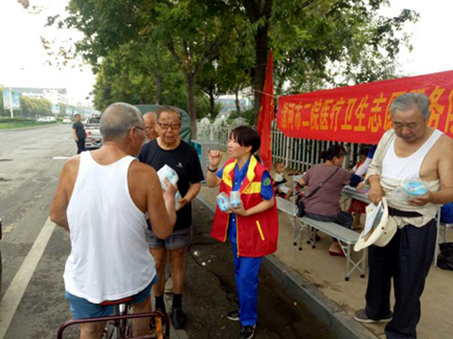 2017年8月25日是全國第一個“殘疾預防日”,殘疾風險伴隨每個人,殘疾預防與個人健康、家庭幸福、經(jīng)濟社區(qū)健康發(fā)展息息相關。市二院組織醫(yī)療志愿者在雙匯廣場進行了健康公眾宣傳和義診,發(fā)放健康宣傳手冊200余份,發(fā)放控油壺限鹽勺小禮品100余份,免費為市民測量血壓等。
