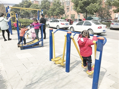 “小區(qū)里孩子太多了,天氣好的時(shí)候,經(jīng)??吹剿麄儊硗?。”在市區(qū)人民路一小區(qū)里,正在帶孩子玩的王老伯告訴記者,小區(qū)里的健身器材旁,最常見的就是老人和孩子,老年人喜歡健身,會(huì)上去練一練,孩子也習(xí)慣上去玩,健身器材旁邊就像是個(gè)小型游樂場(chǎng)。