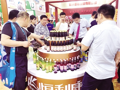 在某品牌的發(fā)酵型飲料展區(qū)前,擠滿了前來咨詢、下單的采購商。參展商告訴記者,酵素飲品是這兩年的市場熱潮,致力于解決更多人的腸道問題,起到減肥、美容、調(diào)整體質(zhì)等作用,很受消費(fèi)者青睞。在此次食博會上,他們的產(chǎn)品也受到了歡迎。
