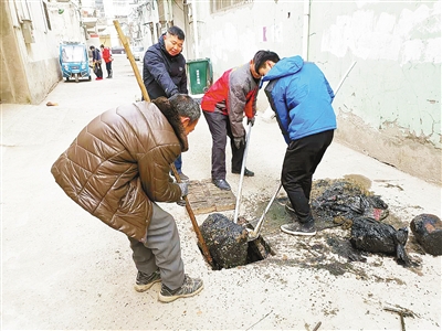 “這個家屬院是老舊小區(qū),平時沒有人管理維護。家屬院的基礎設施陳舊,下水道老化淤積了大量污垢,堵塞嚴重,影響居民生活。臨近春節(jié),居民對此束手無策,只能求助社區(qū)。”郾城區(qū)沙北街道昆侖社區(qū)第六網格網格長王曉云說,接到居民的反映后,她便到現(xiàn)場勘察,發(fā)現(xiàn)家屬院里12個沉淀池全部堵塞了。
