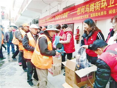 漯河志愿者為環(huán)衛(wèi)工人送上保暖物品