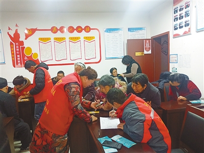 12月6日,漯河沙澧社工中心和市二院的志愿者走進(jìn)郾城區(qū)龍塔街道華山社區(qū),為老人免費(fèi)發(fā)放黃手環(huán)。