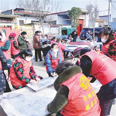 當天一大早,45名巾幗志愿者帶著灶具、面粉、鮮肉、蔬菜等物品來到了陳東村村民廣場上。她們和面、剁餃子餡忙得熱火朝天。沒多久,一碗碗熱氣騰騰的餃子便出鍋了。隨后,志愿者們把餃子分發(fā)給到場的老人和孩子,還發(fā)放了年歷、對聯(lián)、紙抽等禮品,并為放學歸來的兒童送上一個個精美的書包。
