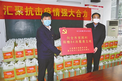 (記者 齊 放)2月6日,在漯河醫(yī)專,口腔醫(yī)學系學生黨支部把5噸84消毒液送到全市75個貧困村駐村第一書記代表手中。