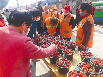 (記者 朱 紅 見習(xí)記者 黨夢(mèng)琦)“新鮮的草莓,每位環(huán)衛(wèi)工可以免費(fèi)領(lǐng)一籃。”4月15日,在市區(qū)緯一路愛心粥屋門前,負(fù)責(zé)人高紅熱情地招呼著前來領(lǐng)取草莓的環(huán)衛(wèi)工。