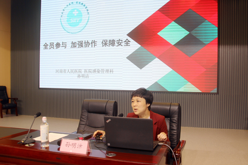 河南省人民醫(yī)院感染管理科科科長孫明潔根據(jù)衛(wèi)計委相關標準、規(guī)范及要求,利用自己豐富的知識和經(jīng)驗,結合實際工作,對安全注射、手衛(wèi)生、重點部位感染等重點環(huán)節(jié)感染控制進行了一次精彩、細致的講授,課后采取答疑討論、現(xiàn)場互動形式,將學術會推向高潮。最后,市二院內(nèi)科護士長徐偉芹就病區(qū)醫(yī)院感染控制工作進行了交流,重點是如何做好消毒隔離制度的落實,減少醫(yī)院感染危險因素,預防交叉感染,保證醫(yī)療安全,包括醫(yī)務人員自身安全。