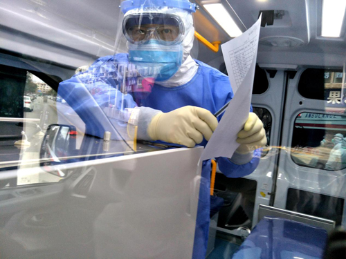 市二院醫(yī)療急救運(yùn)轉(zhuǎn)隊(duì)是2月5號到達(dá)武漢,經(jīng)過兩天的緊張集訓(xùn),今天他們就要開始接到首次急救運(yùn)轉(zhuǎn)任務(wù)。“第一次經(jīng)歷如此重大的戰(zhàn)斗,會緊張、有壓力。”市二院轉(zhuǎn)運(yùn)醫(yī)療隊(duì)的隊(duì)員們深知,每一次轉(zhuǎn)送任務(wù)就是離危險更近一步,但沒有一個人打退堂鼓,大家相互鼓勵打氣,克服了許多難以想像的困難。執(zhí)行任務(wù),穿上密不透氣的防護(hù)服,一穿就是幾個小時,衣服濕了又干干了又濕。因?yàn)榕律蠋?,不敢喝水,回來后要?jīng)過嚴(yán)格的車輛和個人消毒處理,忙活完,大家累得都吃不下飯。