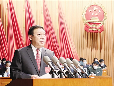 1月4日,市人大常委會主任李思杰在漯河市第八屆人民代表大會第一次會議上作市人大常委會工作報告。記者 張 佩 攝