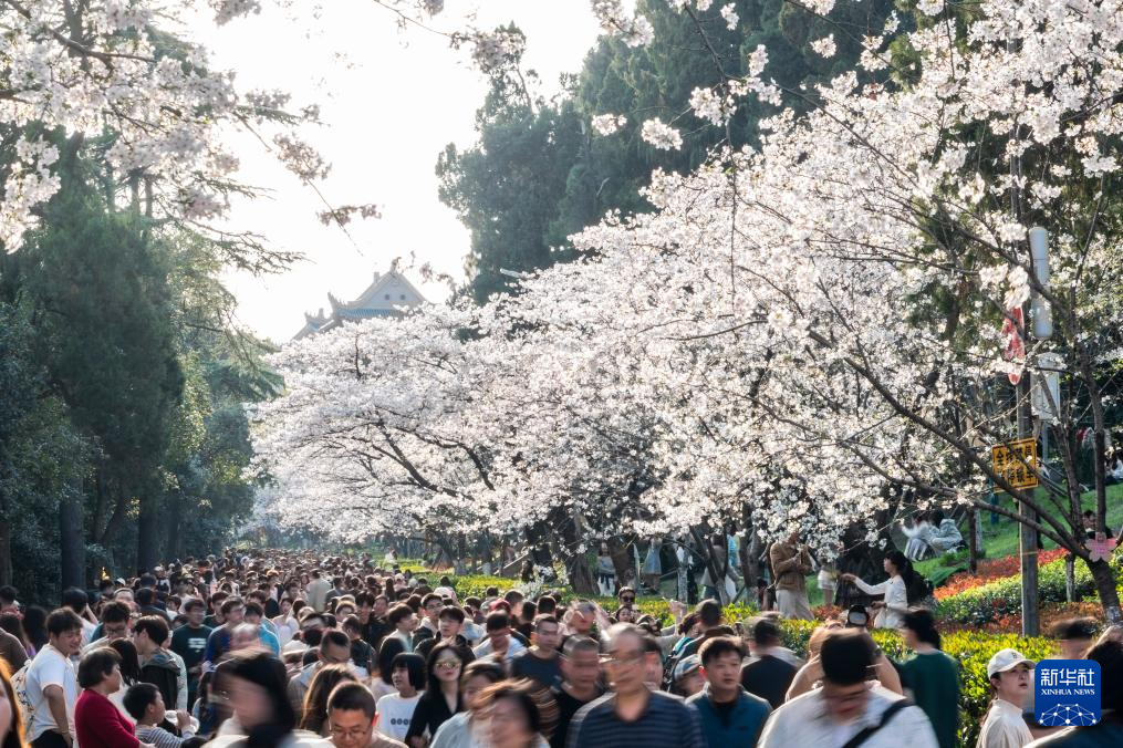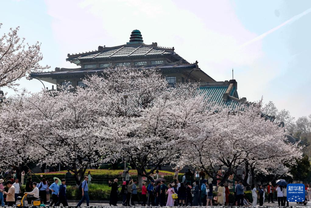 3月24日,游人在武漢大學校園內(nèi)觀賞櫻花。